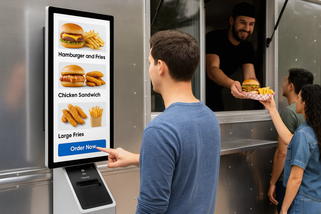 INFI’s floor kiosk lets customers order and pay themselves—freeing your staff to focus on service. Fully integrated with your POS and featuring sleek, user‑friendly menu screens, it boosts throughput and increases average check size.